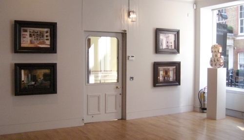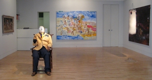 In the new paintings on view in Causarum Cognitio (“The Knowledge of Causes”), the artist plays out deftly placed discrete literary and art-historical references in often vast paintings that, at first glance, resemble those of the great masters. The phrase “In Support of Leonardo Vs. Michelangelo” becomes a refrain throughout the works, notably in La Battaglia di Anghiari dell’Opera Perduta di Leonardo (pictured), a tongue in cheek homage to the famed competition between Medici-era masters Leonardo and Michelangelo. Leonardo’s epic battle, perenially copied by young artists, is reduced to a comic debacle. Bessmertny baitingly aligns himself philosophically with Leonardo through coded messages: his backwards signature a reference to Leonardo’s left-handed writing, while the phrase “Cerca Trova” (“Search and you will find”) alludes to a possible hint by the painter Vasari, commissioned to cover the original painting, that Leonardo’s ruined work remains intact and hidden beneath his own overwrought effort. The work Memorabilis VII - First of All: No Sports, borrows its title from a Winston Churchill quote on what “made him great.” In this case the phrase appears within the lid of a cigar box, in a font and colour similar to those of English propaganda posters from the World War 2 era. An image inside the box renders the former Prime Minister in a printing technique reminiscent of pop artists, while a swoop of paint around his top hat suggests a crown of thorns.
